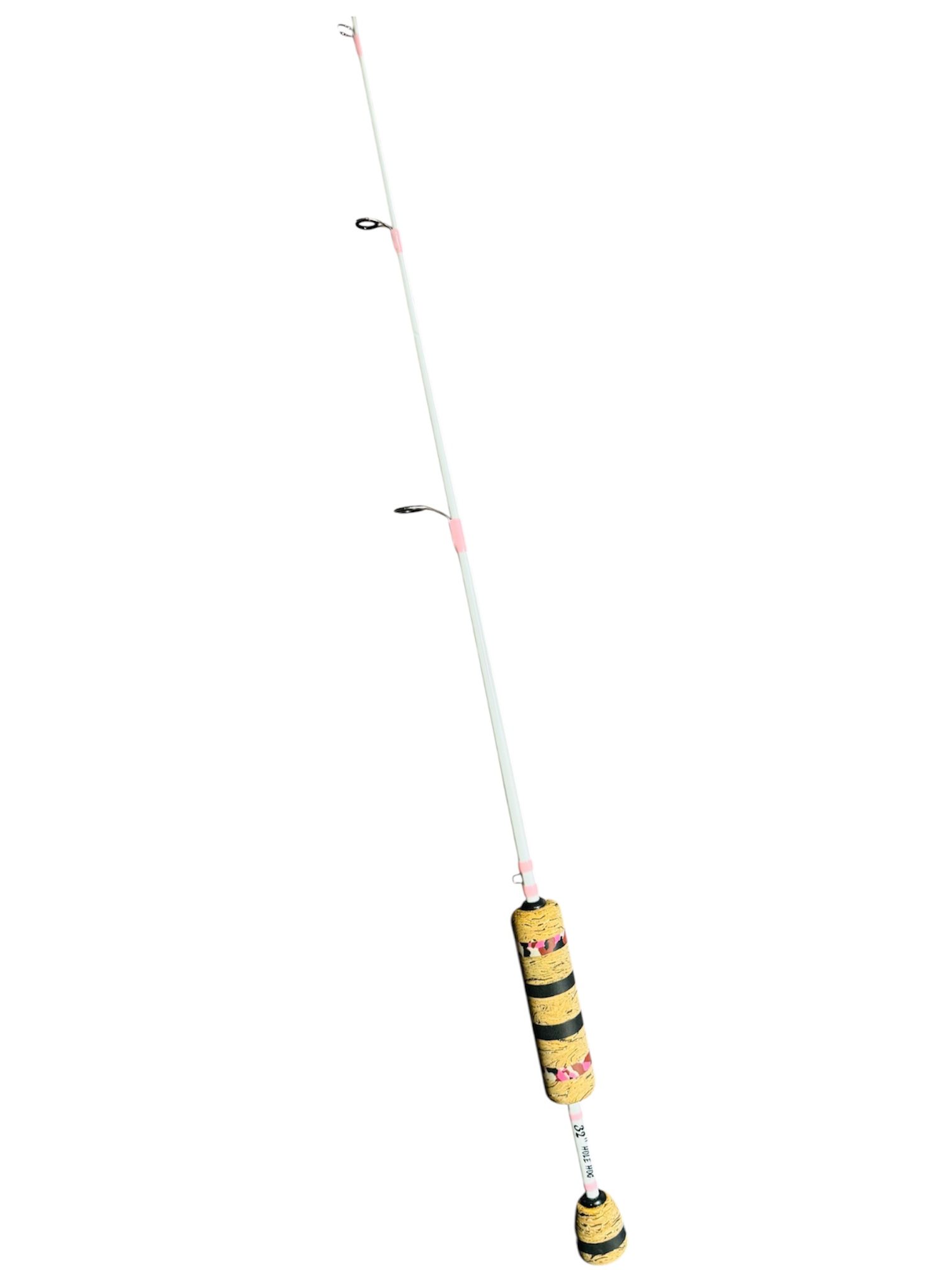 Built for anglers who need both sensitivity and power, the Hole Hog is designed with a responsive noodle tip paired with a strong backbone. This combination allows you to detect subtle bites while still having the strength needed for solid hooksets and control when fighting fish. This build features a white finish, pink thread wraps, and a custom split grip cork/pink camo EVA handle, giving the rod a classic, clean look while maintaining the performance C&J Custom Rods are known for. Like every rod from C&J Custom Rods, this rod is handcrafted with close attention to detail, ensuring durability, reliability, and a custom feel on the ice.